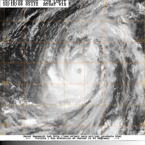 Acum Lupit este la categoria 3-a cu vanturi de 120 mph . Eu sper ca ochiul/zidul acestui taifun sa fie filmat de vreun vanator . N-as avea nimic impotriva sa treaca peste N Filipinelor .Imagine